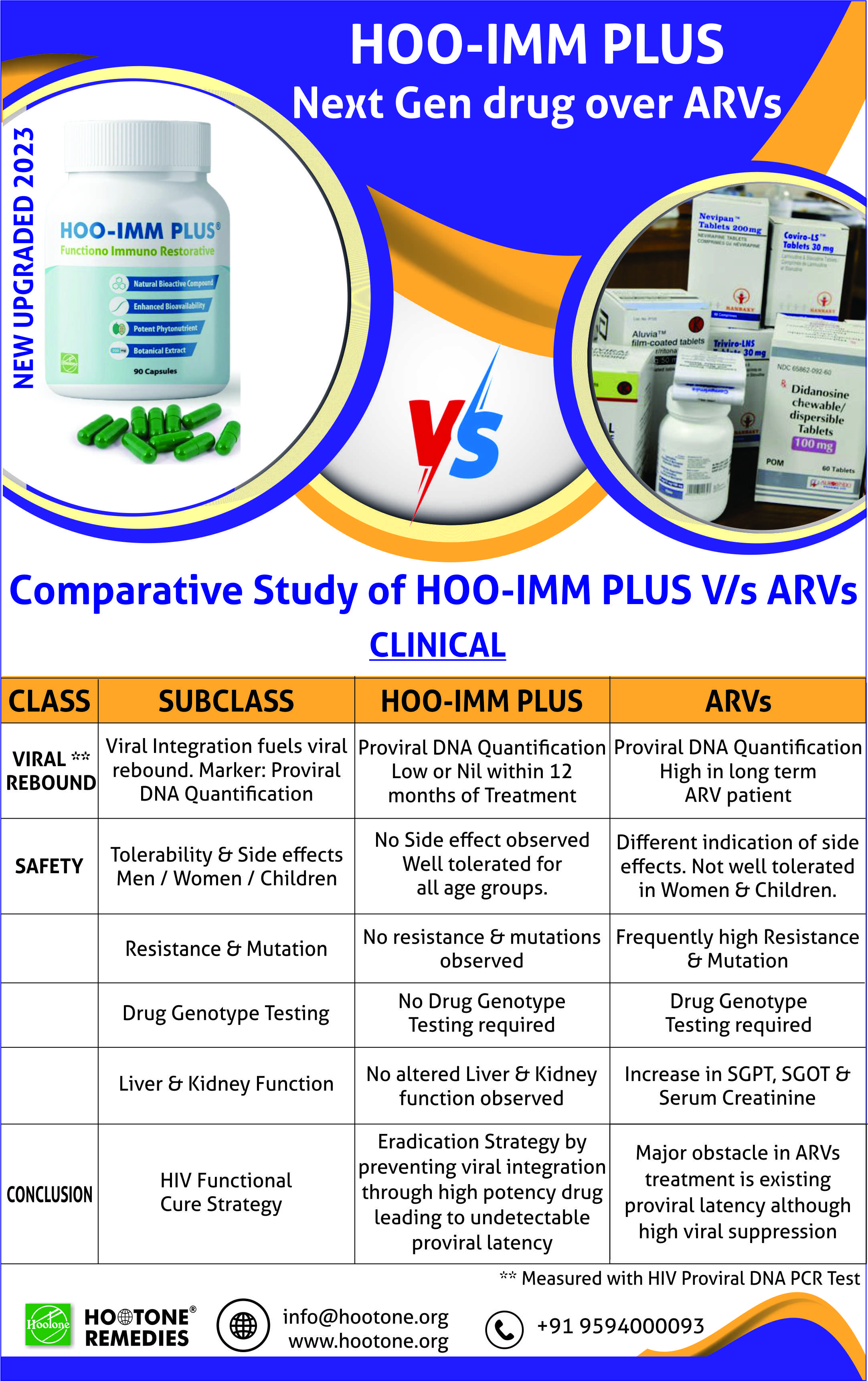 ARVs inability to long term suppress the virus results in increase in viral RNA load. "The No Virologic Failure" ability of HOO-IMM PLUS effectively results the patient's viral load at undetectable level; a positive outcome of patient receiving HOO-IMM PLUS over ARVs.