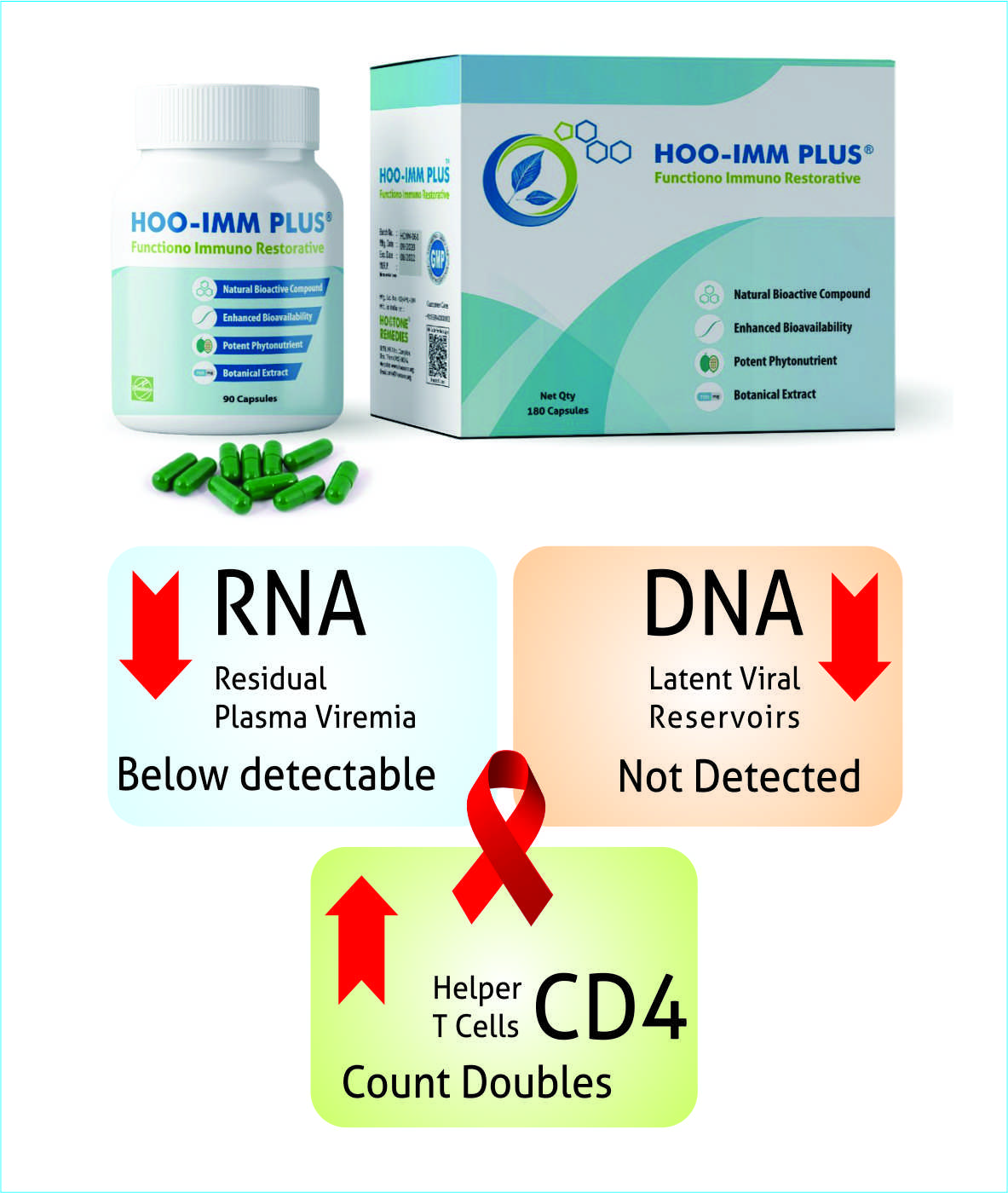 ARVs inability to long term suppress the virus results in increase in viral RNA load. "The No Virologic Failure" ability of HOO-IMM PLUS effectively results the patient's viral load at undetectable level; a positive outcome of patient receiving HOO-IMM PLUS over ARVs.